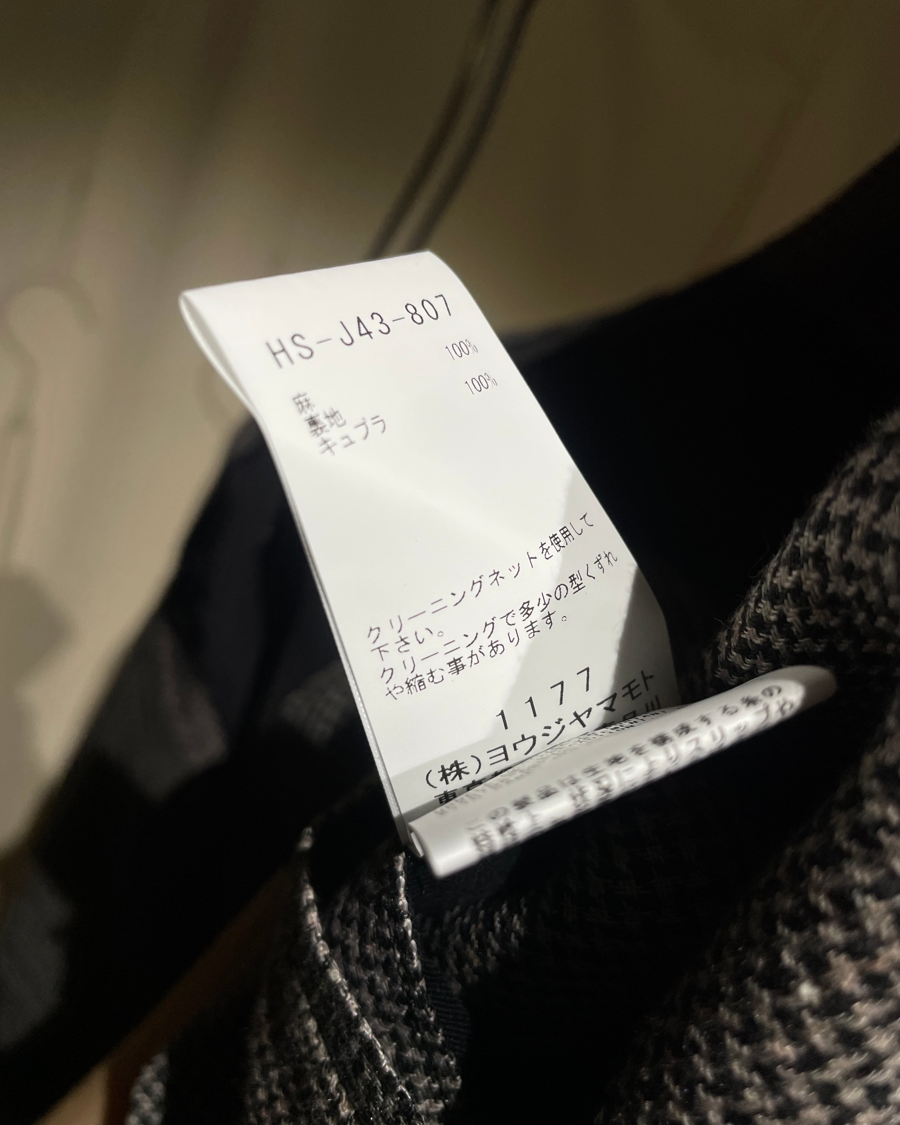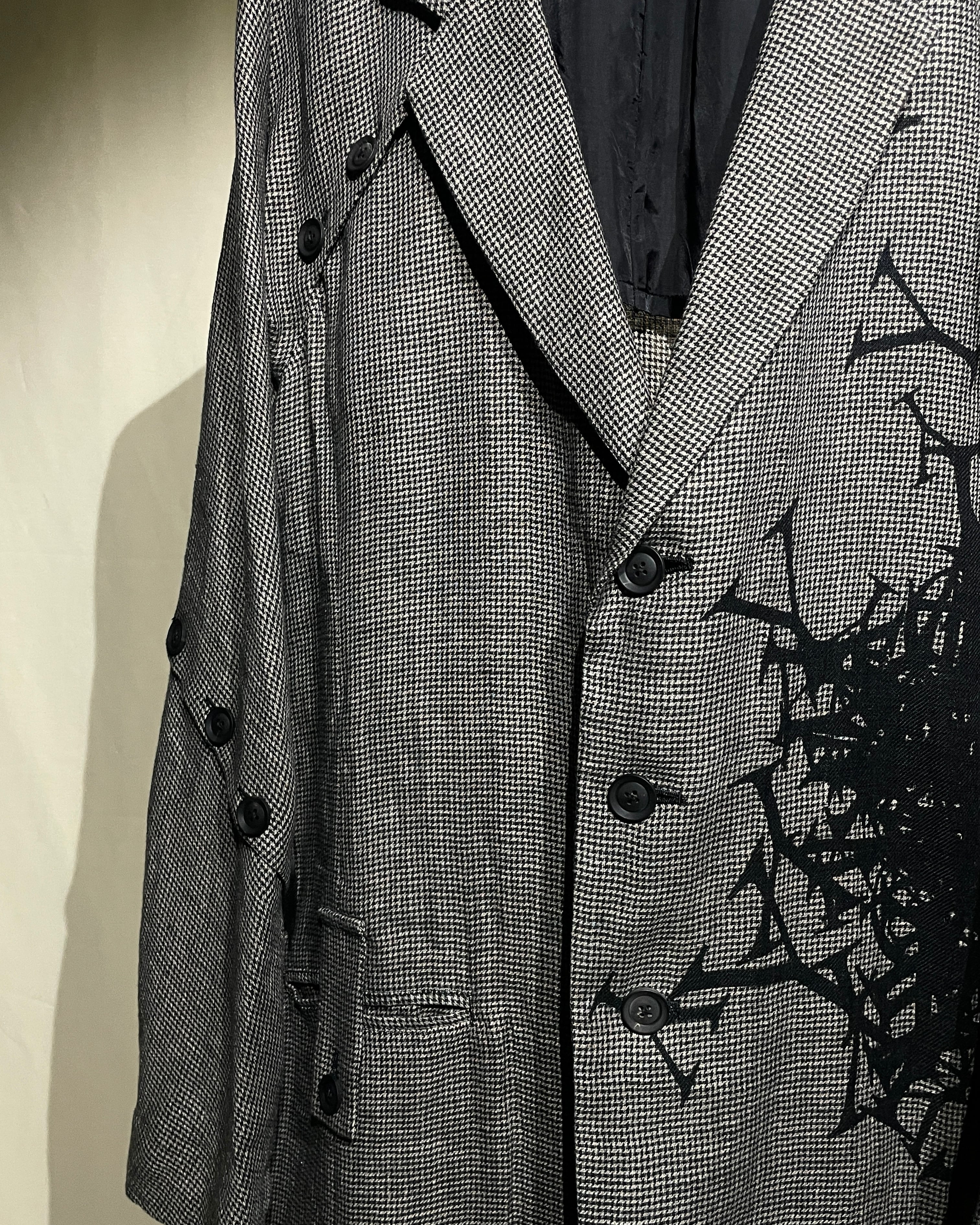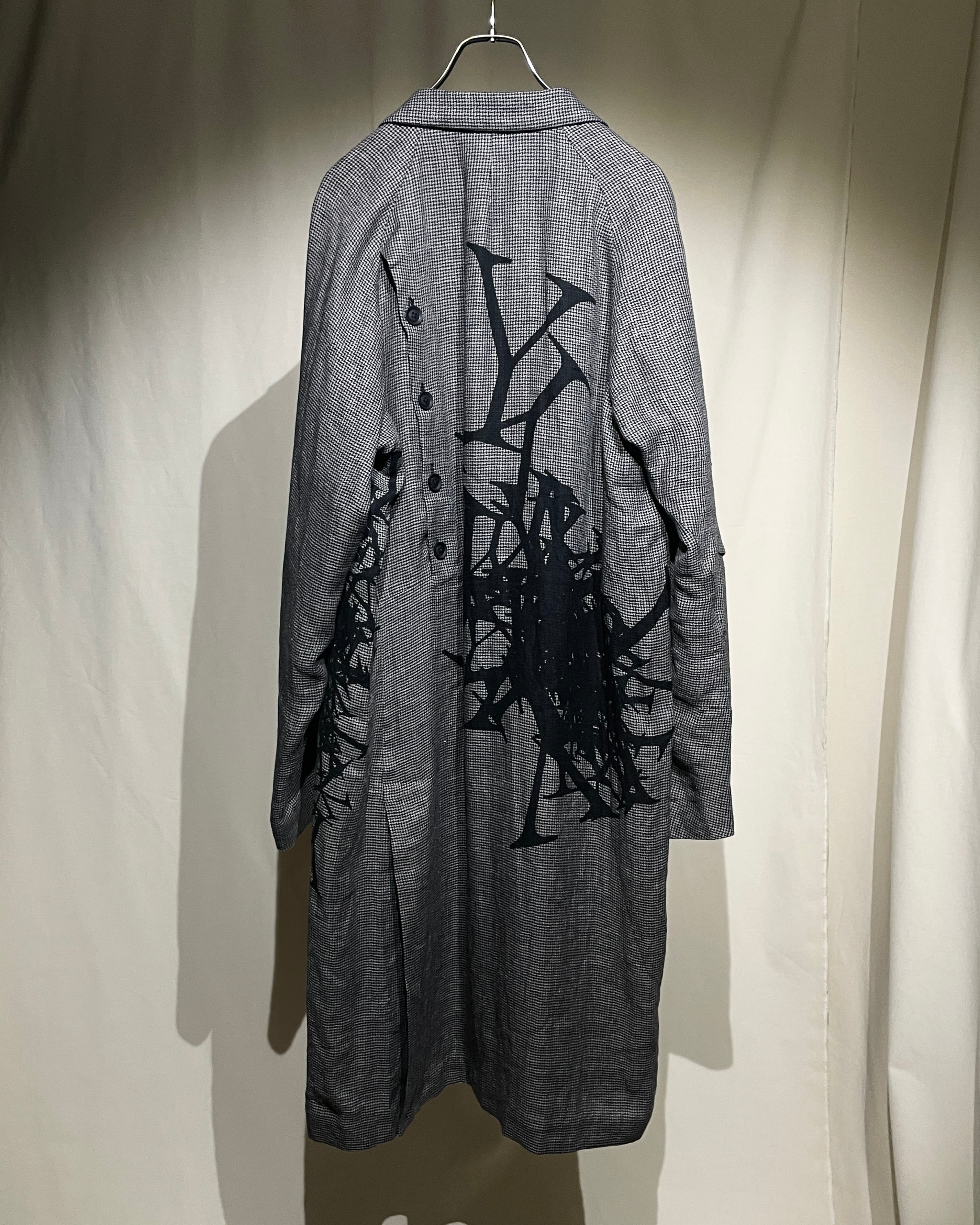S/S2024 Yohji Yamamoto Pour Homme - Asymmetrical Linen Houndstooth Coat with “Y” print